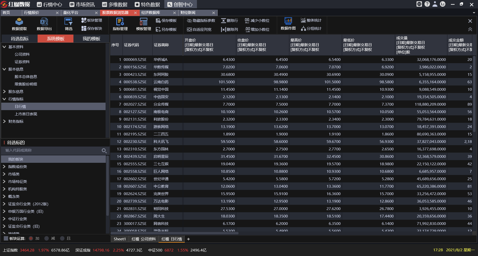 红楹金融终端涵盖股票、债券、基金、指数、期货、期权、外汇、宏观、行业等各类金融信息,内置专业组合管理、期货分析、量化平台、金融计算器等多种分析研究工具,为金融组织、政府组织、企业、高校、媒体等给予全面精准的投研服务。既是跨市场、跨品种、跨地区的金融信息平台,更是集行情、数据、资讯、工具及特色研究平台于一体的金融分析系统。